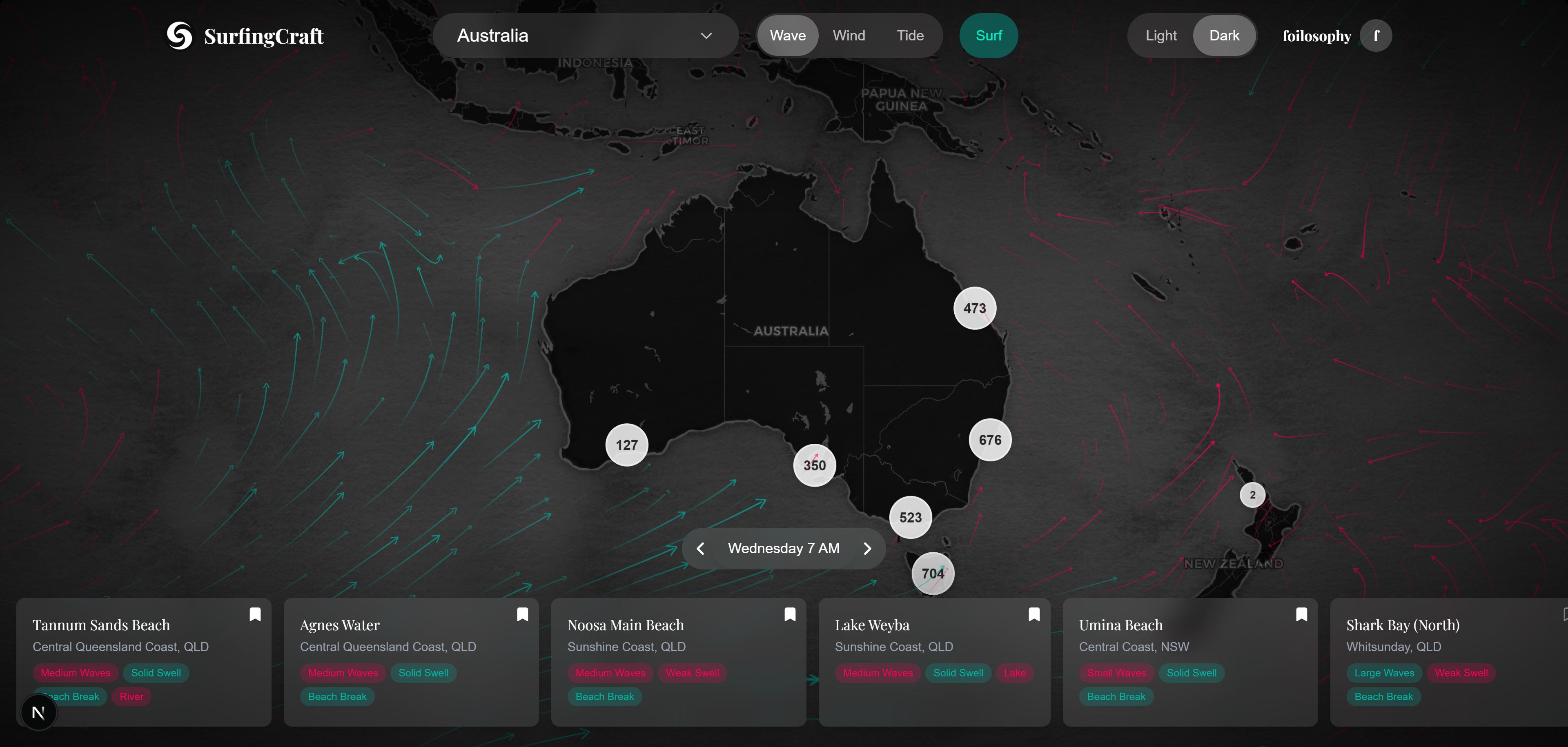 Crafted from AI-enhanced, live forecast data via cutting-edge visualization design tools, revealing the surf like you've never seen it.