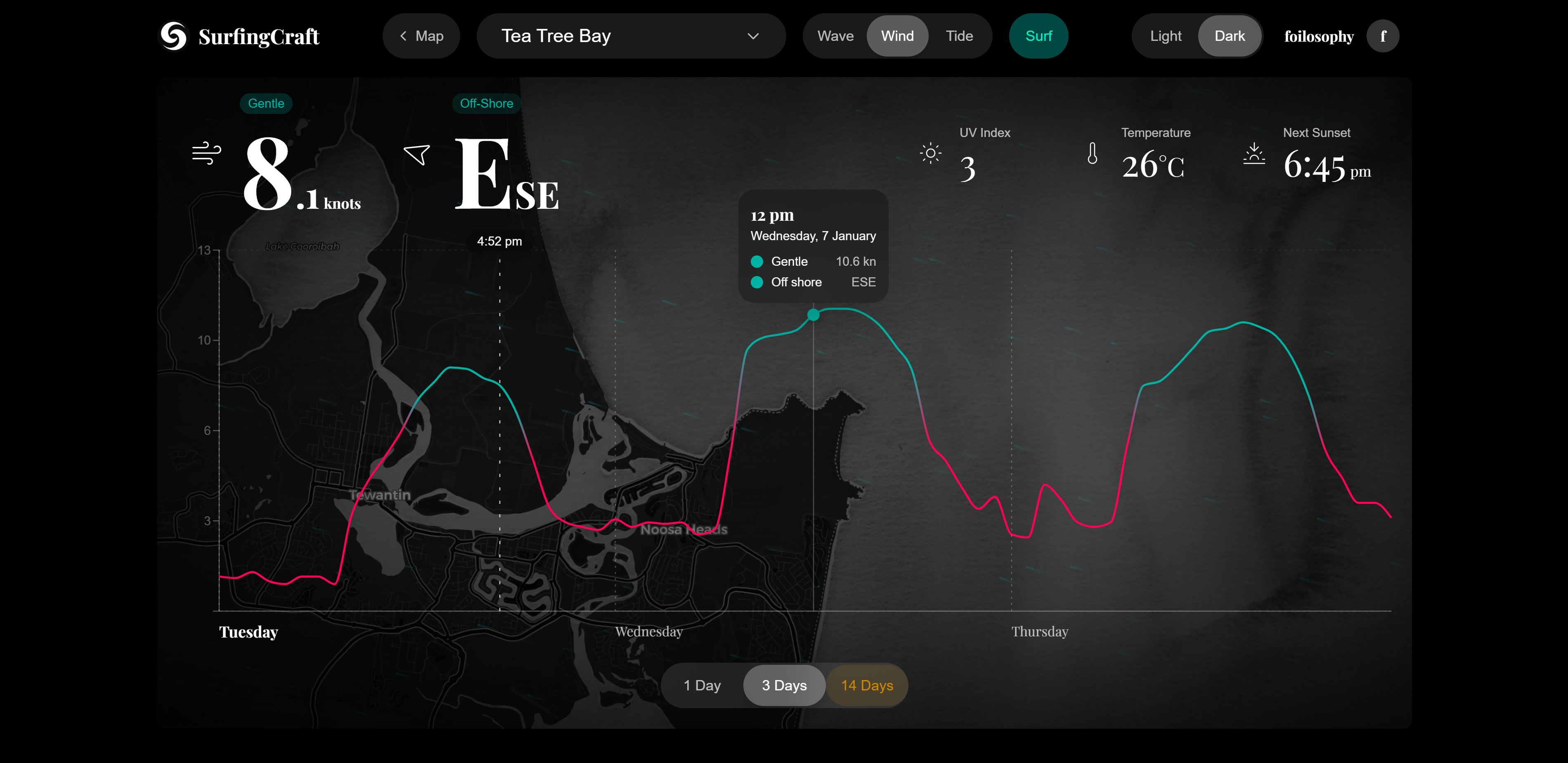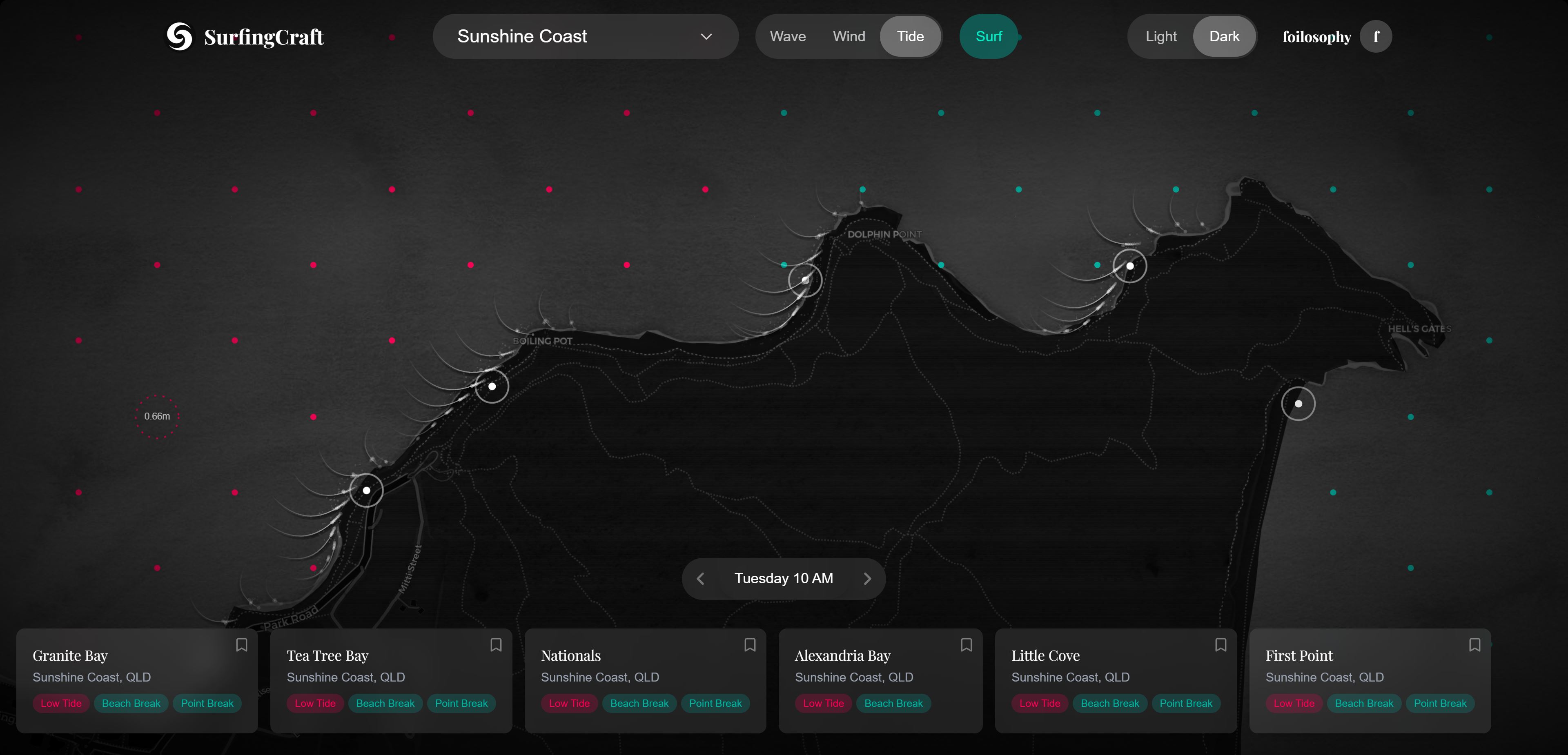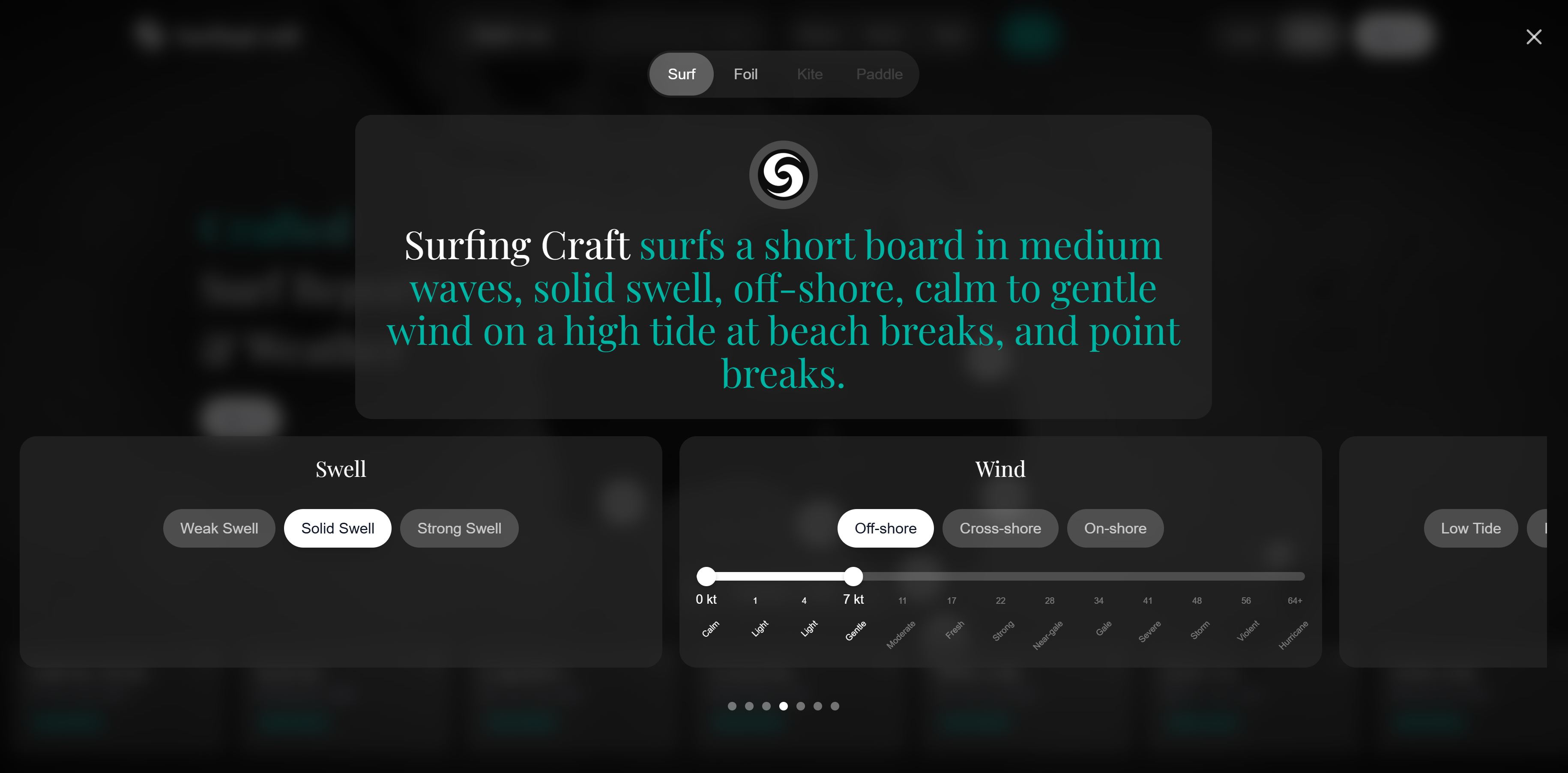 Craft a surf report that knows you. Longboard those clean, small off-shore points, or harness the on-shore gusts for epic wing foiling.